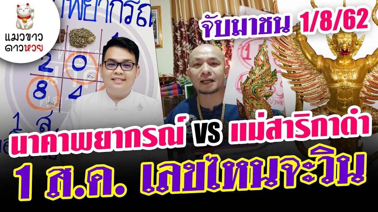 งวด 1 ส.ค. 62 หวยนาคาพายากรณ์ จับคู่ชน หวย อ.ต้น แม่สาริกาดำ [ แมวขาว ดาวหวย ] เลขไหนจะวิน
